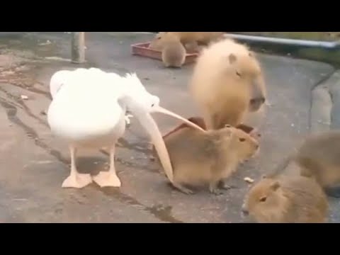 Пеликаны пытаются съесть капибар